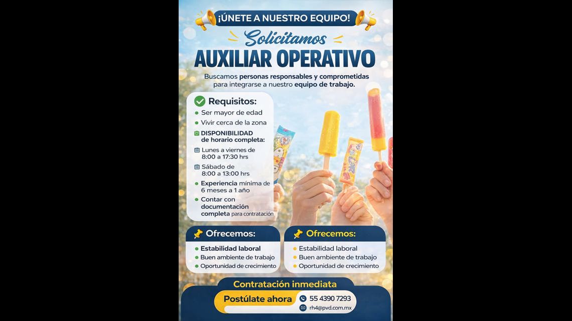 🔔 ¡ÚNETE A NUESTRO EQUIPO! 🔔Solicitamos AUXILIAR OPERATIVO